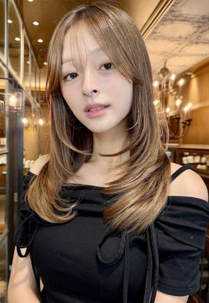 | スタイル名 | ラフに動かすナチュラルブラウンロングレイヤー 顔まわりカット |